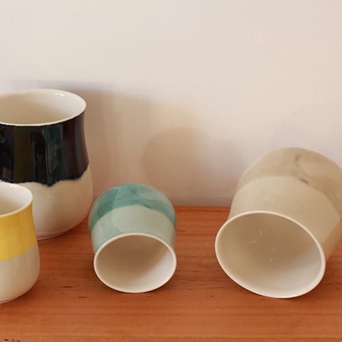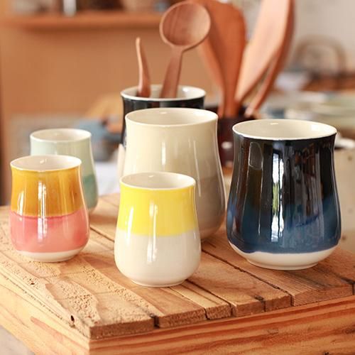 濃淡のある色味が焼成により溶け、混じりあうことで深みのある表情を生み出しています。